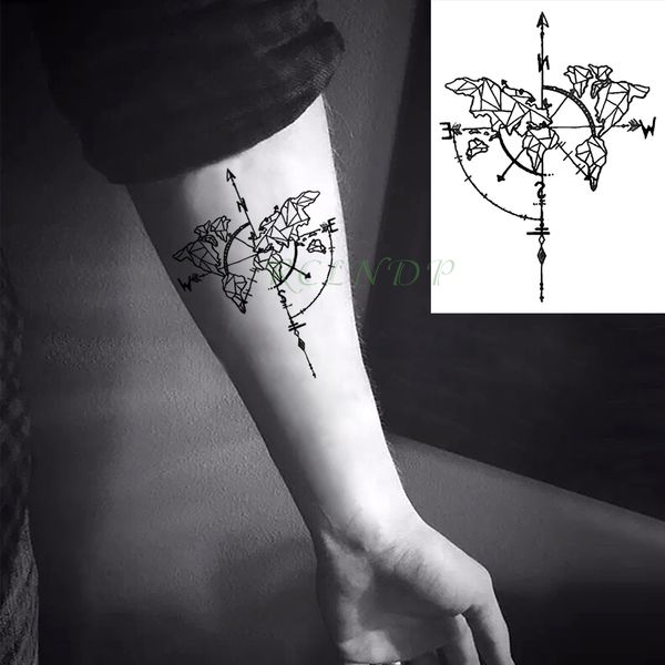 Waterproof Temporary Tattoo Sticker Compass Flash Tatoo Fake Tatto Neck Wrist Foot Arm Tatouage Body Art For Girl Men Women Name Tattoos Tattoo